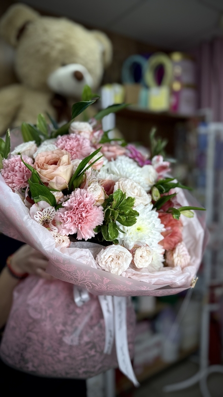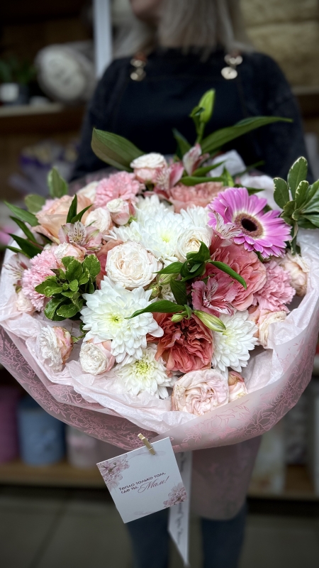 Каждый взгляд на этот букет пробуждает воспоминания о счастливых моментах, о радости и нежности, о том, что жизнь полна красоты. Пусть этот букет станет не просто украшением, а символом любви, дружбы и счастья, который будет согревать душу и радовать глаз.